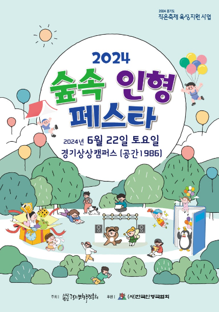 오늘은 2024 숲속 인형 페스타에 대해 알아보겠습니다. 숲속 인형 페스타는 24년 6월 22일 (토요일) 경기상상캠퍼스 공간 1986(작년 숲속 퍼펫 파크가 진행된 곳)에서 개최됩니다. 숲속 인형 페스타는 어린이만이 아닌 가족 전체를 대상으로 진행되며 경기인형극진흥회가 주최하고 경기관광공사가 주관하는 인형극 축제로 도심과 가까워서 녹음과 함께 휴식과 힐링하게에 좋을 것 같습니다.