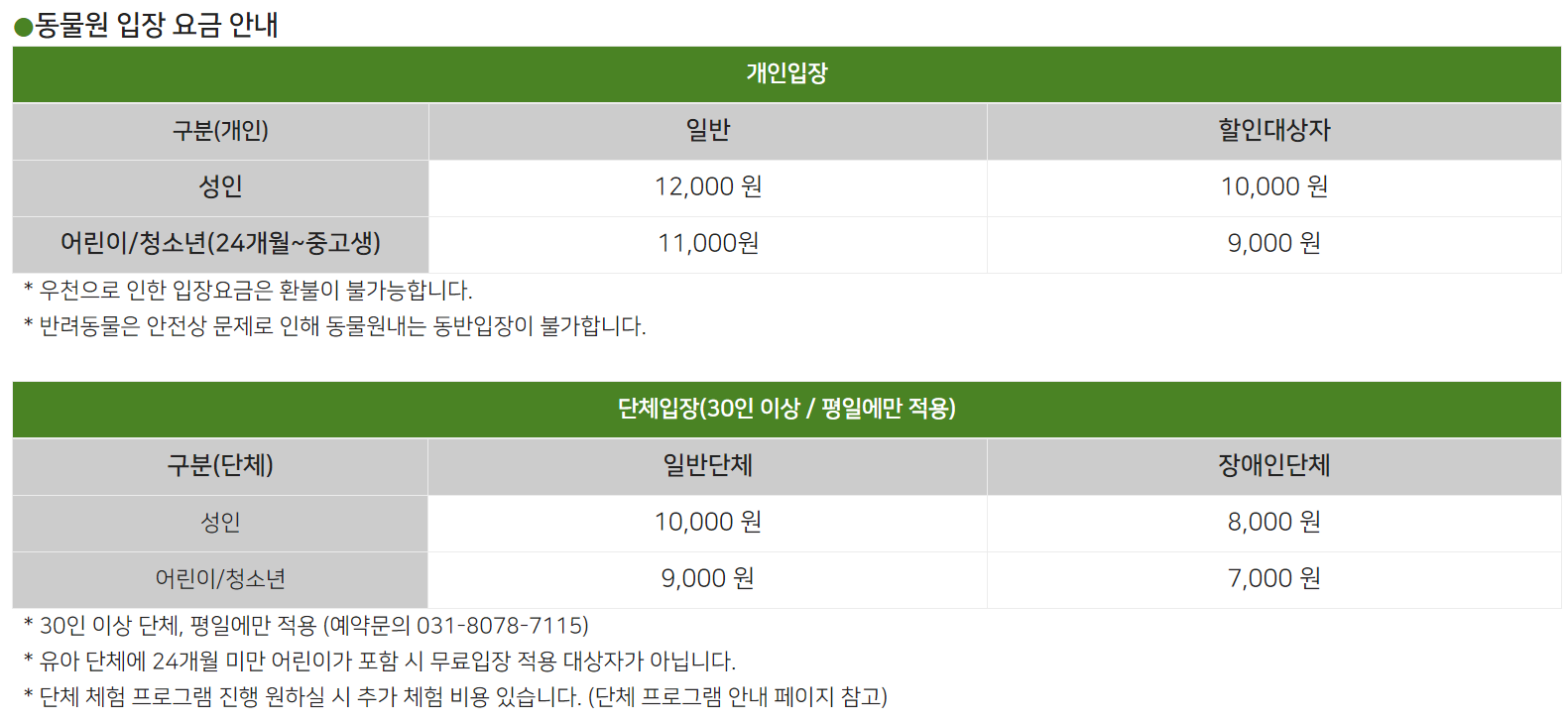 아침고요가족동물원 이용요금