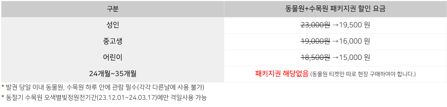 동물원 + 수목원 패키지 요금