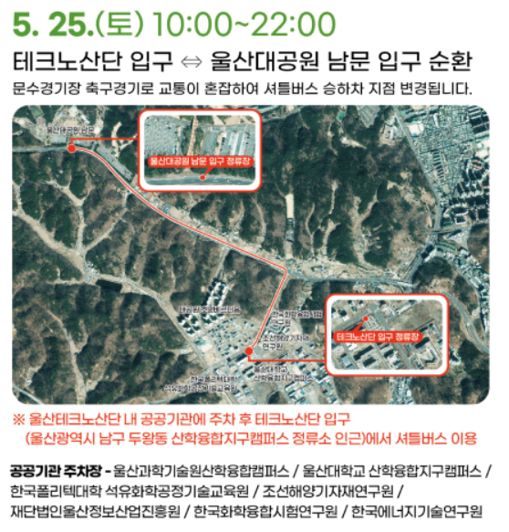 하지만 5.25.(토)는 문수경기장 축구경기(울산현대 vs 대전시티즌)로 인해 승하차 지점이 아래와 같이 변경됩니다.
