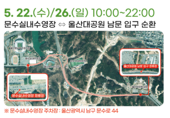 - 구간 : 문수실내 수영장 ↔ 울산대공원 남문 입구 순환
